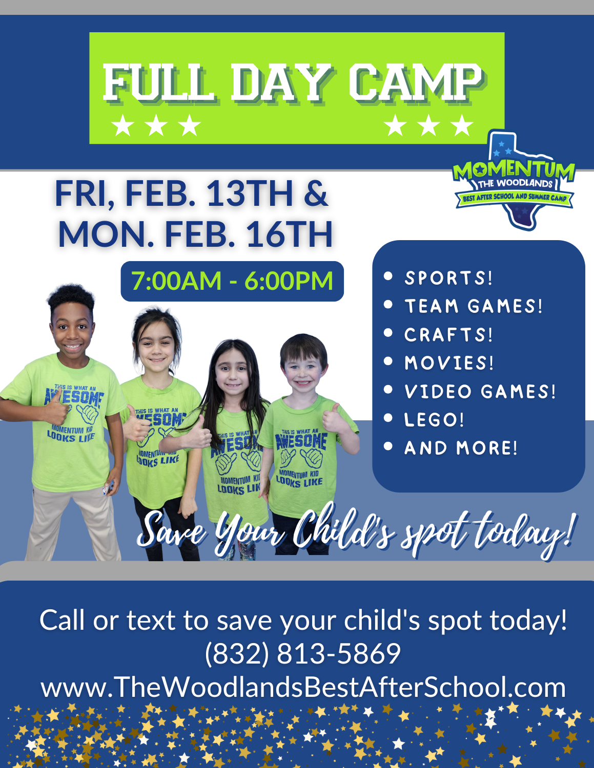 President’s Day Camp is going to be a blast! We are excited to keep the BEST kids active and entertained this President’s day break! Open to ages 5-12.